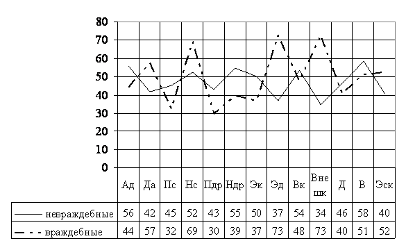 каждом профиле установлено, что у лиц с высоким индексом враждебности